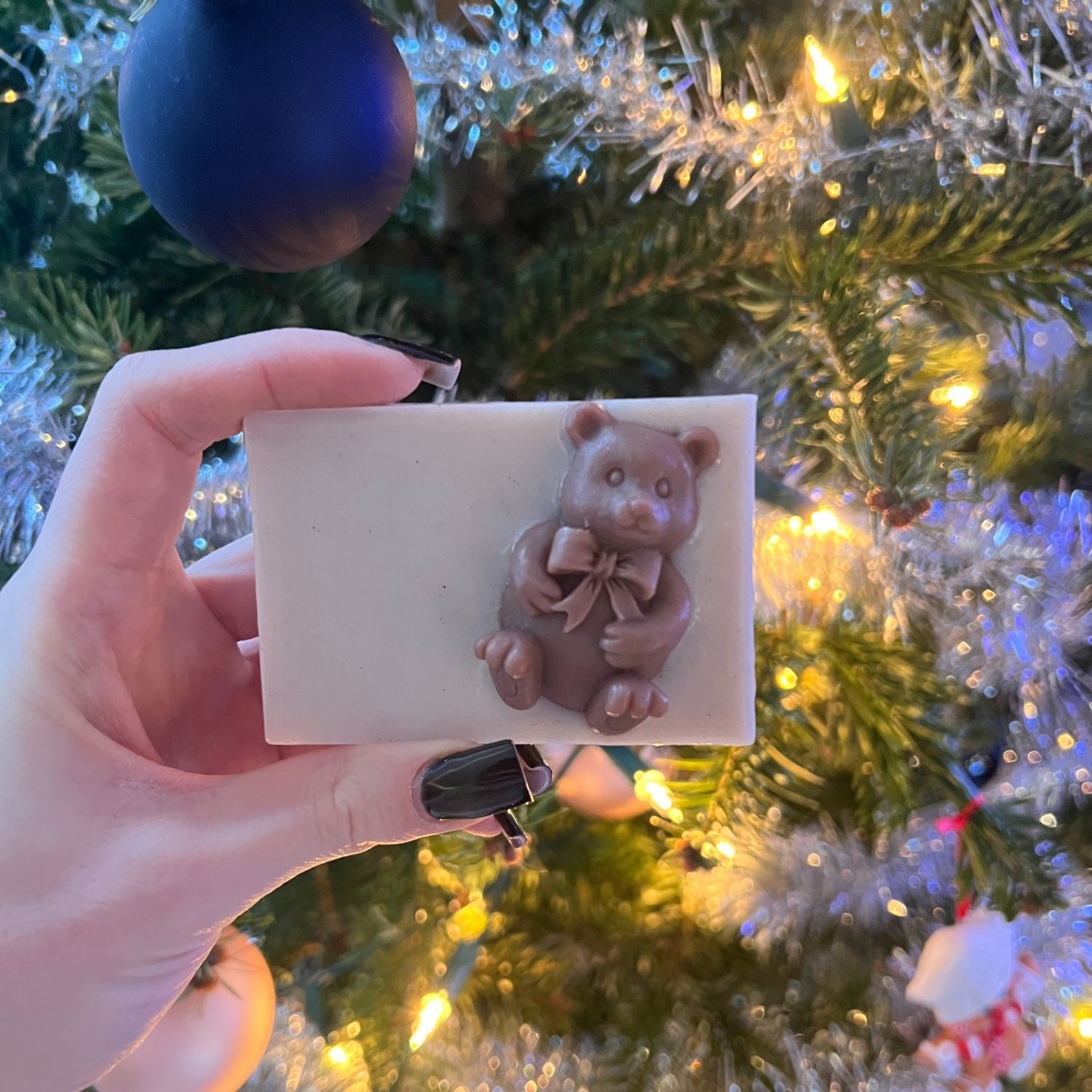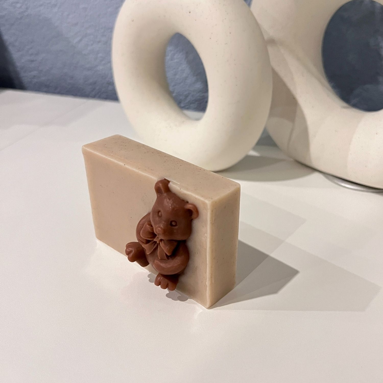 Soft bear soap. Made of goat milk soap, enriched with cinnamon and decorated with a cute bear on top. With a delicious chocolate scent.